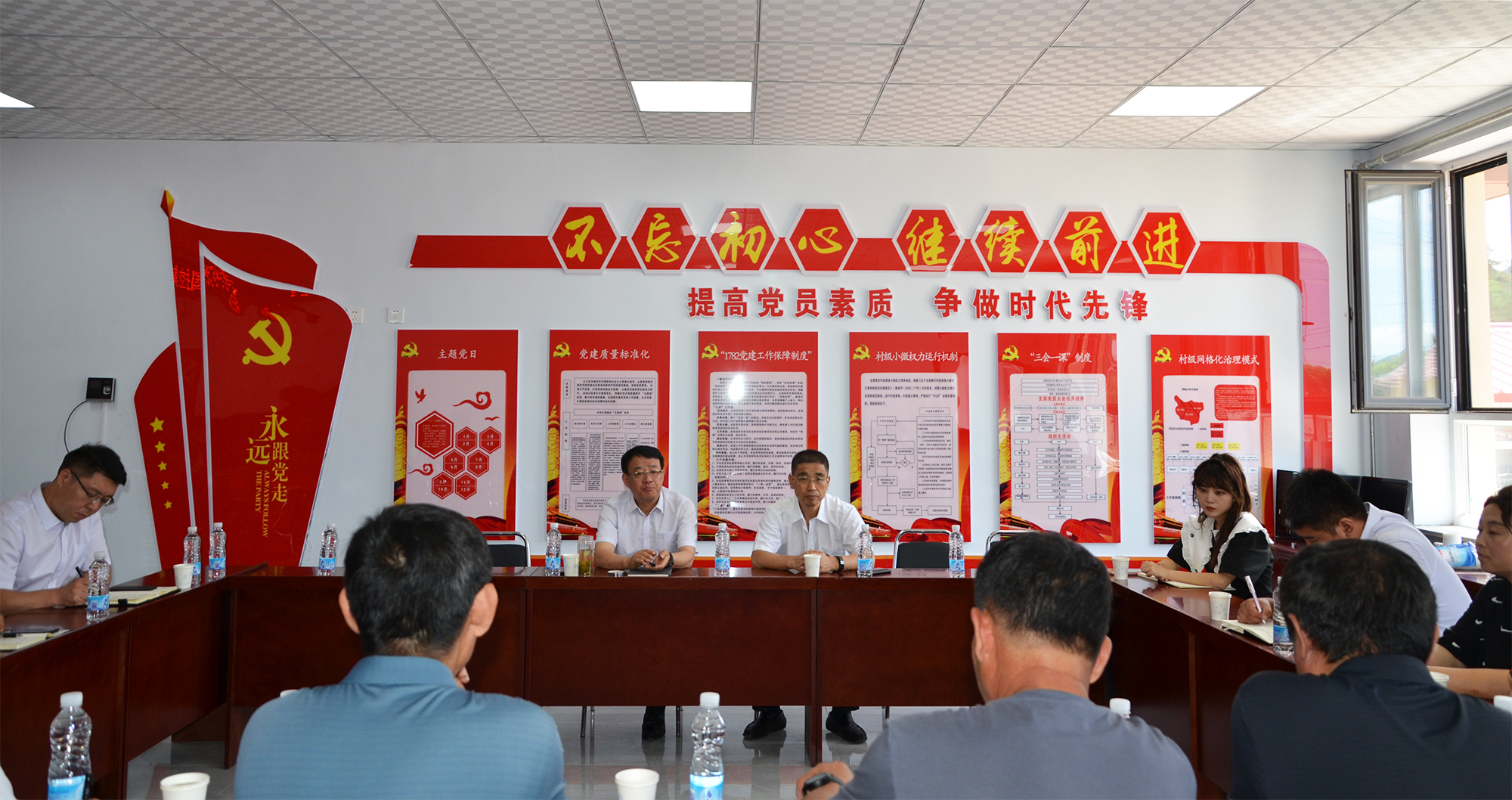 随后,张建军一行同牌楼乡党委书记杨瑞民、于家湾村党支部书记(兼村委会主任)何宝祥等人在于家湾村委会召开座谈会,听取了村两委及驻村工作队的工作汇报。张建军指出,驻村工作队协助乡党委、村两委在提升村基础设施、提高村集体收入等方面做了大量卓有成效的工作,取得了良好的帮扶效果,感谢乡党委和村两委对工作队工作的关心和支持。今后工作队要继续发挥市总工会和安博电子的自身优势,进一步强化村党支部建设,大力发展产业振兴,健全防止返贫监测机制,探索一条农村高质量发展之路,提高村民幸福感、满意度。座谈会结束后,就如何深入开展乡村振兴工作和提升驻村帮扶效果,进行了深入交流。