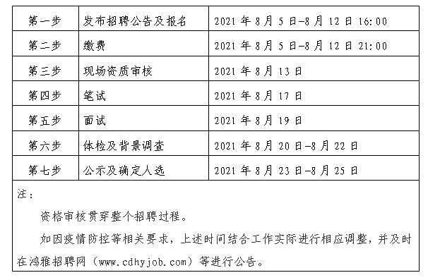 2021年8月5日至 2021年8月12日16:00 在鸿雅招聘网(http://www.cdhyjob.com/)、鸿雅微信公众号、安博电子官方网站等发布招聘公告。